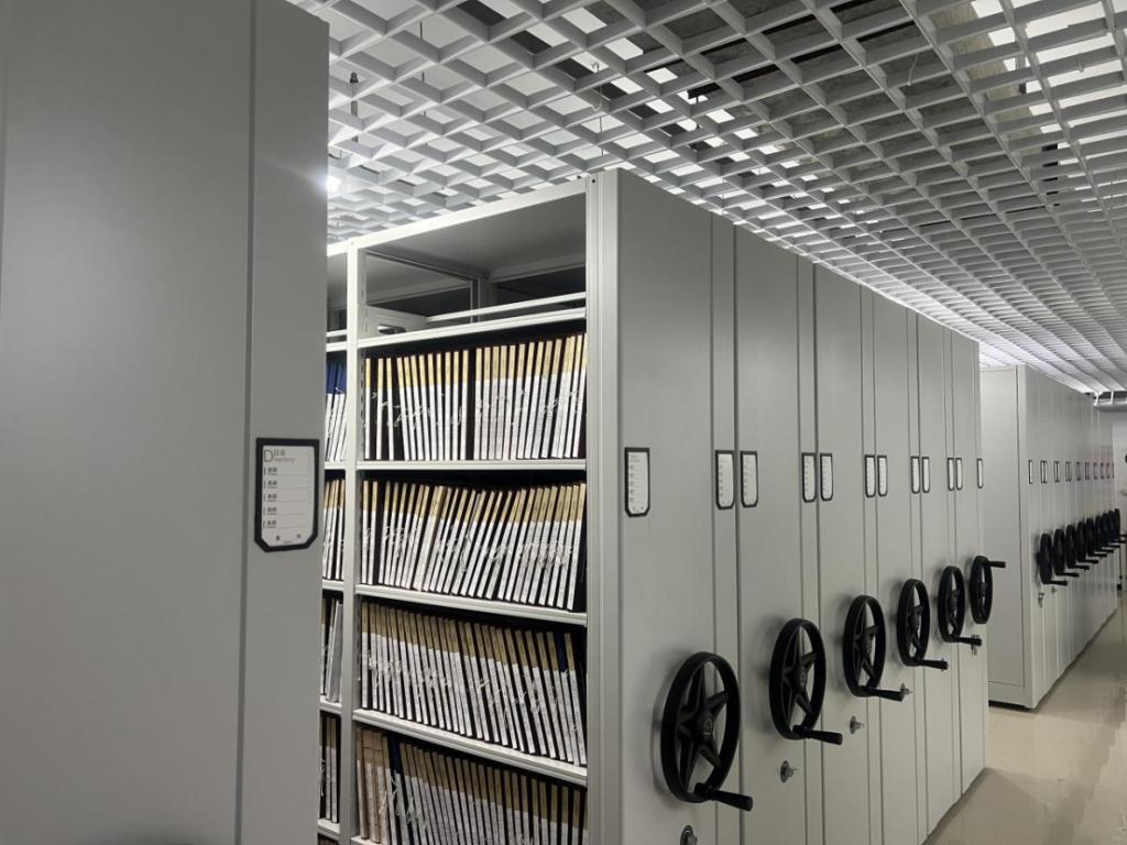 随后,宋明凯依次查看人事档案库房、学生库房、教学库房、财会库房、保密库房及实习间等处,仔细检查温湿度调控、防火防盗防蛀等安全措施落实情况,并查阅部分档案归档管理情况。在听取工作汇报后,宋明凯对档案馆在档案收集、整理、保管、利用以及档案管理专业学生实习实践等方面取得的成效表示肯定。他强调,档案工作是学校事业发展的基础性工作,承载着校园历史记忆,对文化传承、教学科研服务具有重要意义。